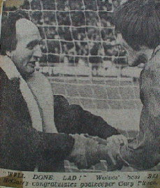 Star of the show was keeper Gary Pierce. Bill McGarry announced him as man of the match. Gary had long paid second string to Phil Parkes, but an injury left the door open for Gary. He tells us he was on £25 a week, with a £5 bonus for keeping a clean sheet! Wonder how Michael Oakes compares!