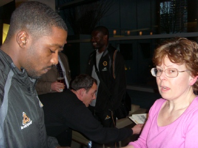 Meet The Players 2008-9 - Mick McCarthy kindly agreed to this year’s Meet the Players before the Charlton Match. Stuart Earl presented Wayne Hennessey with his London Wolves Player of the Season trophy. (More details here ). We wished Sylvan Ebanks-Blake a Happy Birthday for the following day (and asked him for a hat-trick) (He scored 2 and hit the post, one of the goals being goal of the season. Neill Collins thanked Stuart for his shirt sponsorship and two members will meet him again at the shirt sponsors’ lunch at Compton in 10 days time. Mickey Gray thought his goal against Palace was worth waiting the seven years for and George Elokobi said how much he enjoyed playing with Mickey and how much he was learning from him.