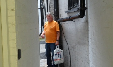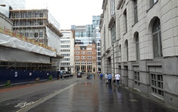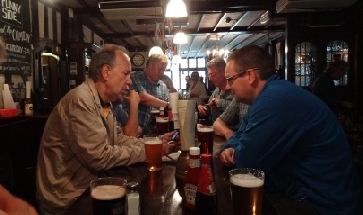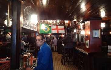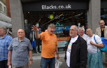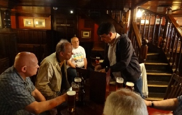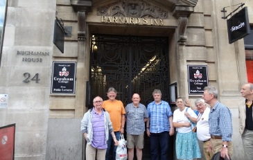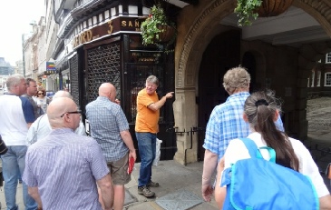 Matt gets the beers in, before we quickly move on. A few steps away Barnard’s Inn was where Pip in Great Expectations lived, while Disraeli was Christened at the Wren designed St Andrew, which is opposite Thavies Inn (Bleak House) at Holborn Circus. The church’s Court is held at No 7 on the way down to Fleet Street. A quick shower cooled us down but, fortunately another pub was at hand!