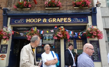 And the next hostelry has nothing to do with Dickens, but it’s a CAMRA pub, the Hoop & Grapes in Fleet Street