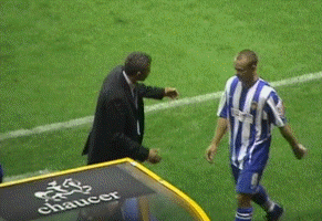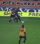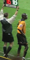 Seol was clattered by Klaus Lundekvahm with feet high going for the ball but somehow managing to wrap his legs around Seol’s neck for which he got a deserved booking (in spite of what Sky say) The second half just got under way when the confrontation “INCE v WISE” predicted by the papers was enabled by Dennis Wise coming on. He made a major difference to the match and the pressure swung on to us. And for Dennis the Menace. Bets were that he would be sent off within a minute, but we were wrong - it was only a booking and it took two minutes for him to pul Rohan Ricketts back by the shirt. Rohan swung round and was probably lucky to escape at least a stern talking to but wise was booked acknowledging the Wolves fans singing “Dennis Wise you’re a w**ker you’re a w**ker” with a thumbs up. Lundekvahm was sent off when he hacked Kenny down.