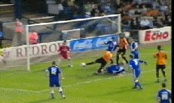 Fortunately Michael Oakes was wide awake and pulled off a terrific save as the ball headed to the top corner, just tipping it over the bar.