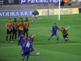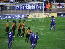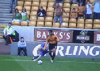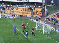 Next match/report: Septmember - away to Luton Townhere Wolves 3 QPR 1 Tuesday 30th August (Cort 6, 24, 90) Carl’s first league hattrick An amazing performance by Carl Cort to grab his first hat trick for Wolves. He spent much more time in the box and it paid off. Although some of his touches were as poor as we’ve come to expect, his finishing for the first and third goals was outstanding, and his positioning for the second goal made by Kenny Miller, was similarly excellent. The goal brought another chorus of “there’s only one Kenny Miller” recognising both the excellence of the cross, as well as their displeasure over his substitution on Saturday. Outstanding performances, then, from Kenny Miller as well as Joleon Lescott, Rohan Ricketts and Darren Anderton in his home league debut who ran the game until QPR starting man-marking him late on. Leon was strong and running well into positions and could have scored. This was also probably Rob Edwards’ best performance at centre back. But, it should have been more, with Rohan clear through and a Danny Shittu own goal being disallowed by the incompetent referee (Nigel Miller) and linesmen. The first goal in the sixth minute came from Rohan Ricketts persistence. A couple of minutes earlier he had another good 25 yardchance wel saved from a knock down by Cort, but this time when the QPR goalie Simon Royce parried it, Rohan made a lot of ground to win the ball back. A good cross was totally miskicked by Leon - hitting it against his own leg and it rebounded backwards towards Carl whose hard shot between the keeper and the post was unstoppable. Within 5 mnutes though QPR were level with Stefan Moore going down the left tpwards the North Bank and delivering a great cross to their captain Kevin Gallen. Gallen lept above the static Naylor who seemed totally lost on this cross. Minutes later, usually troublesome Paul Furlong got clean through but Oakes pulled off a great save diving to his right. T Leon had two great chances - the first from Rohan went wide, and the second from Carl Cort was saved by the keeper. And just before half time a one two between Kenny and Rohan left Royce standing but Rohan’s shot curled wide. 4 minutes into the second half had the North Bank screaming for a penalty after Danny Shittu (strangely pronounced sithoo by 107.7) upended Kenny in the box as he ran on to Leon’s pass, but Kenny’s namesake didn’t give it.