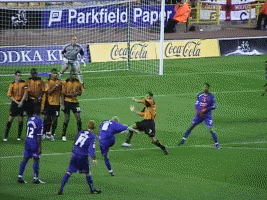 Overall a saisfactory performance, but we desparately need to get our strikers firing. Cort’s two simple misses were to prove costly, coupled with Niemi’s outstanding performance. Kenny again worked really hard, but Rohan drifted in and out of the match with only one shot of his own to speak of. Sparky had by far the best shot turned out via the post by Niemi in the 13th, and he had a good first half. bit quieter in the second but still covering defensively. Nayls and Jackie made quite a few overlap runs, but Seol was not as mesmerising as we’ve come to expect, and still gets fairly easily pushed off the ball. Oakes looked amazingly commanding in the box and even through the ball out rather than kicking every time! Joleon again was our man of the match and Incey’s presence was commanding. Dennis Wise was reminded that “there’s only one Paul Ince”. Rob Edwards coped very well with everything he had to do. The substitution’s came a bit late - and we didn’t really seem to be able to take advantage of the extra man But, I’m not sure where this wolf in the left of the picture came from during Rohan’s mesmerising run