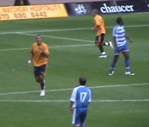 A good performance overall by Wolves - especially Stephen Elliott who had three clear cut chances thanks to his good positioning in the box. We could easily have had 5 or 6 and the first goal was an unbelievable mix up between Neill Collins and keeper Wayne Hennessey. The Wolves goals were stunners - a terrific header by Seyi running into the box and a marvellous solo goal by Jay Bothroyd. However, his celebrations which included raising his index finger then shouting at the bench, for less than two seconds, were taken as disrespectul by Mick and he was hauled off, in an even shorter time. The Wolves players were left out on the pitch for some time as Mick and Jay had a dressing room interview. Mick said post match on WM that it was over and done with, but we might expect that Jay will not be with us for too long. Hahnemann returning from a broken hand was outstandong and kept Reading in it, until we made it easier for them. On this performance they might struggle. So, several home debuts.
